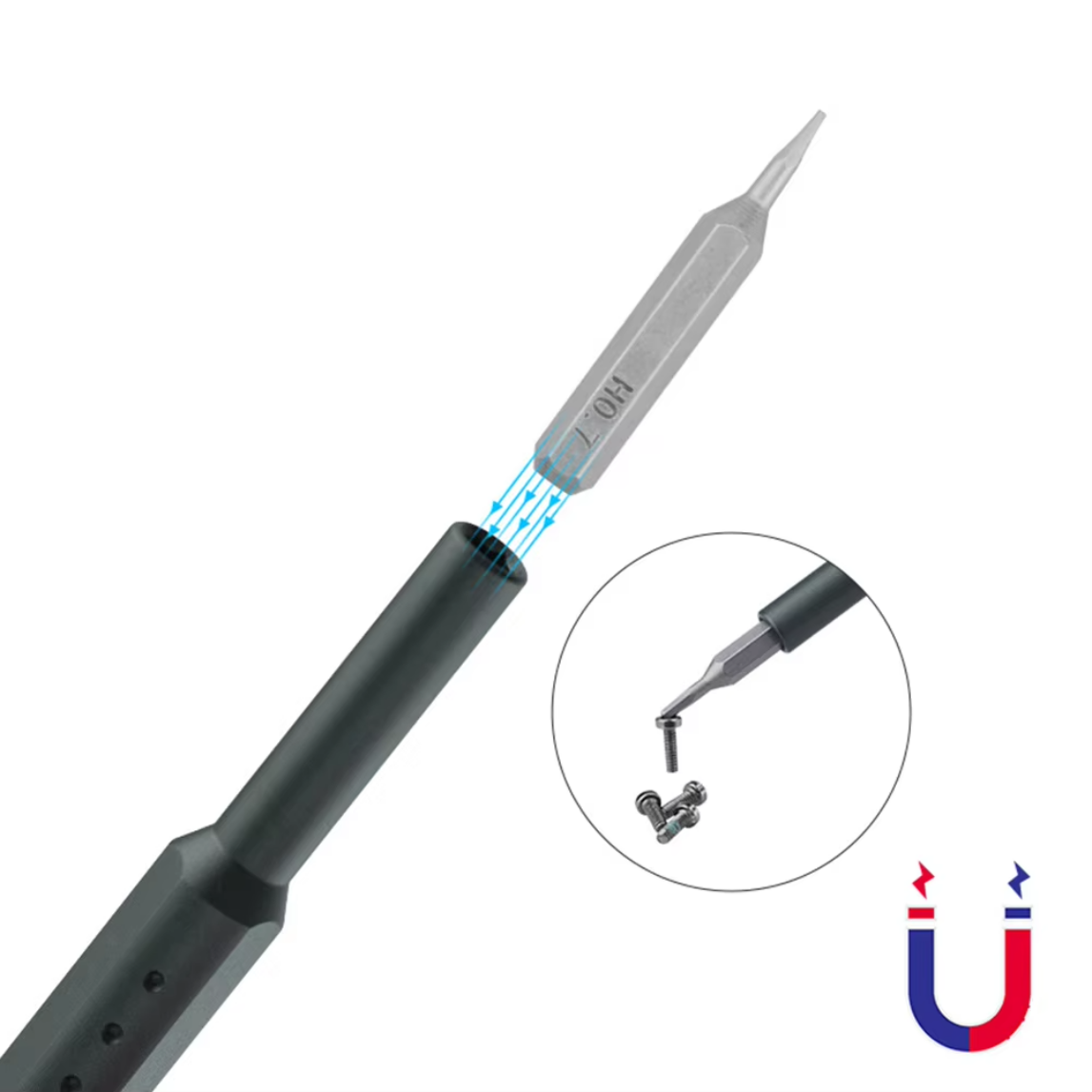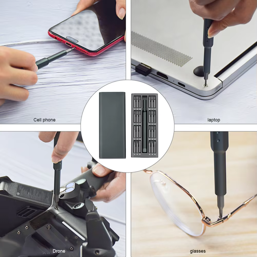 Ce set d'embouts de précision avec son tournevis est un kit complet conçu pour réparer les appareils électroniques, montres, lunettes et autres dispositifs de précision. Il comprend 49 embouts de haute qualité, permettant de démonter et de remonter rapidement et facilement la plupart des vis.