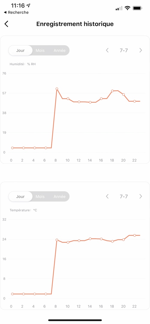 Surveiller la température et l'humidité d'une pièce instantanément ainsi que les variations grâce à l'historique dans l'application.